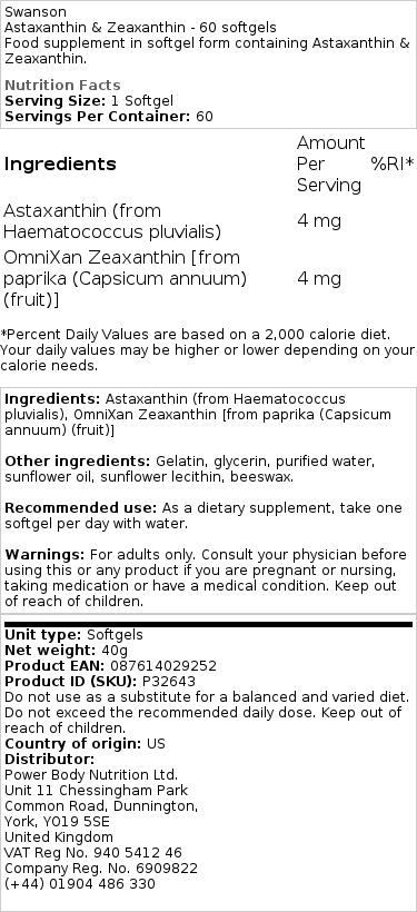 - Dozaj: Fiecare softgel conține o concentrație optimizată de astaxantin și zeaxantin.