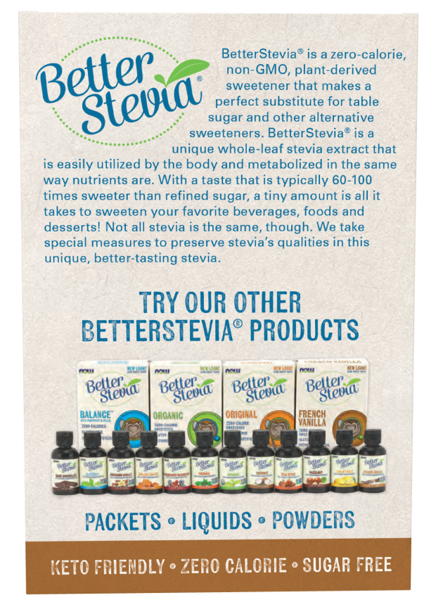 Folosirea regulată a steviei din Better Stevia Packets poate contribui la menţinerea unui regim alimentar controlat în calorii, fiind o opţiune excelentǎ pentru cei care sunt conştienţi de consumul lor zilnic de dulciuri. La Eco Supplements selectăm cu atenţie suplimente care susţin un stil de viaţǎ echilibrat şi sănǎtos. Alegeţi Better Stevia Packets pentru a vǎ bucura zi de zi de dulceaţa naturalǎ fărǎ calorii excesive!