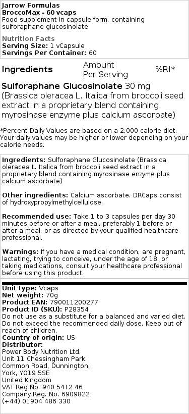 Fiecare capsulă de BroccoMax conține extract concentrat din broccoli, o sursă recunoscută tradițional pentru susținerea stării generale de bine. Broccoli este utilizat în mod tradițional pentru a contribui la menținerea unei funcţionari normale a sistemelor corporale datorită compușilor săi bioactivi.