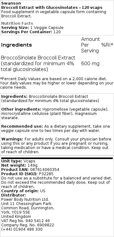 Descoperiți puterea naturii cu Broccoli extract with Glucosinolates – 120 vcaps, un supliment alimentar de la Swanson, conceput pentru a susține un stil de viață sănătos și activ. Provenind din Statele Unite, acest produs este ideal pentru cei care doresc să își îmbogățească dieta cu nutrienți valoroși din broccoli.
