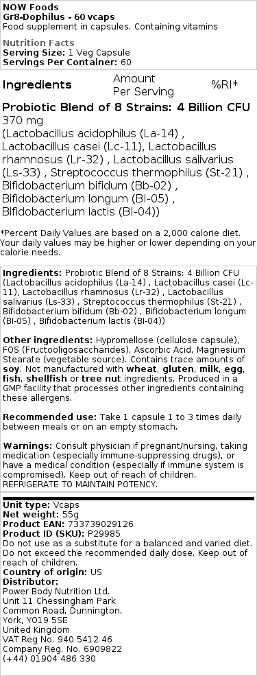 Descoperiți Gr8-Dophilus – 60 vcaps, un supliment alimentar de la NOW Foods, conceput pentru a susține un stil de viață sănătos și echilibrat. Provenind din Statele Unite, acest produs este ideal pentru cei care doresc să își îmbunătățească rutina zilnică cu o formulare avansată.
