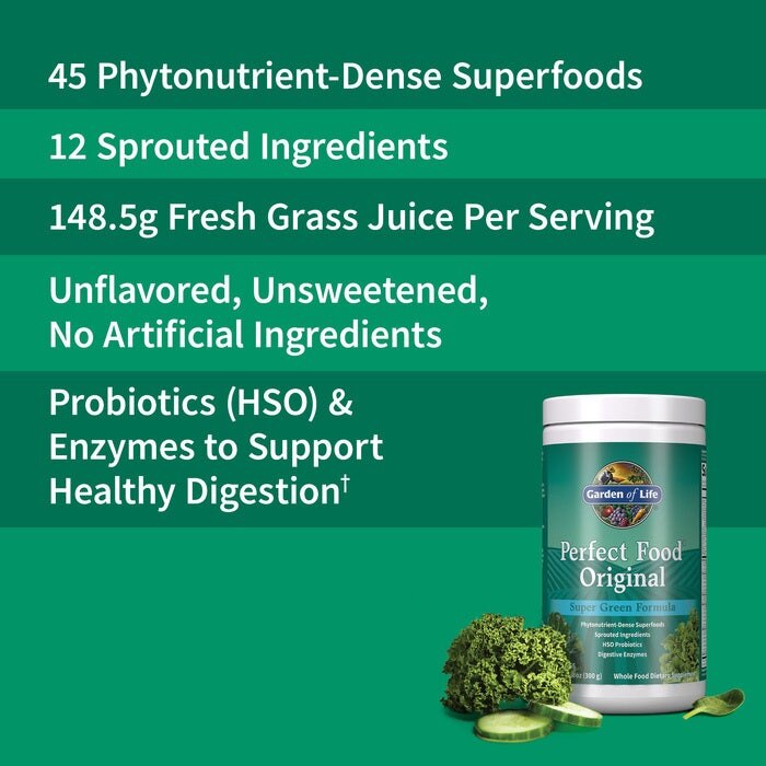 Descoperiți Perfect Food Original – 300g, un supliment alimentar de la Garden of Life, creat pentru a susține un stil de viață activ și sănătos. Provenind din Statele Unite, acest produs este ideal pentru cei care doresc să îmbogățească dieta lor zilnică cu nutrienți esențiali.