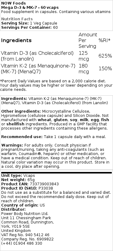 Descoperiți suplimentul alimentar Mega D-3 & MK-7 de la NOW Foods, conceput pentru a susține un stil de viață sănătos cu ajutorul ingredientelor naturale. Acest produs combină vitaminele D3 și K2 în capsule ușor de administrat, ideale pentru utilizare zilnică.