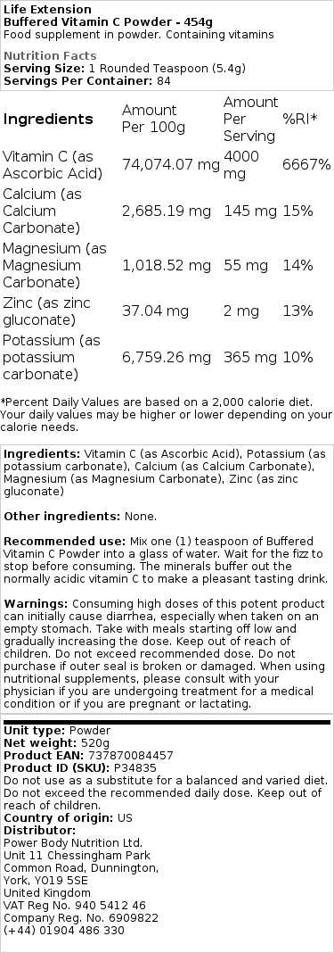 Descoperiți puterea antioxidantă a Buffered Vitamin C Powder – 454g, un supliment alimentar de înaltă calitate, conceput pentru a susține sănătatea generală și vitalitatea. Provenind din Statele Unite ale Americii, acest produs este ideal pentru cei care caută o formă eficientă și ușor de utilizat de vitamina C.