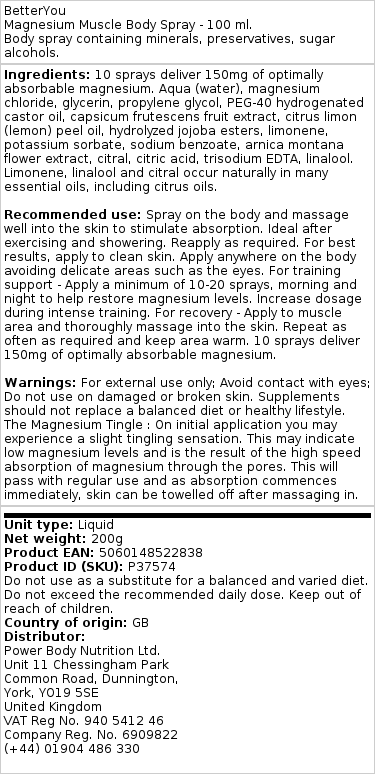 Spray-ul Magnesium Muscle Body Spray este o soluție practică și eficienta care se integrează cu ușurința în rutina zilnică. La BetterYou, ne dedicăm selecţiei atente a suplimentelor care susţin un stil de viaţa echilibrat şi sănatos. Acest produs este o dovadǎ clarǎ că sănǎtatea poate fi susţinutǎ printr-o abordare simplǎ şi directǎ.